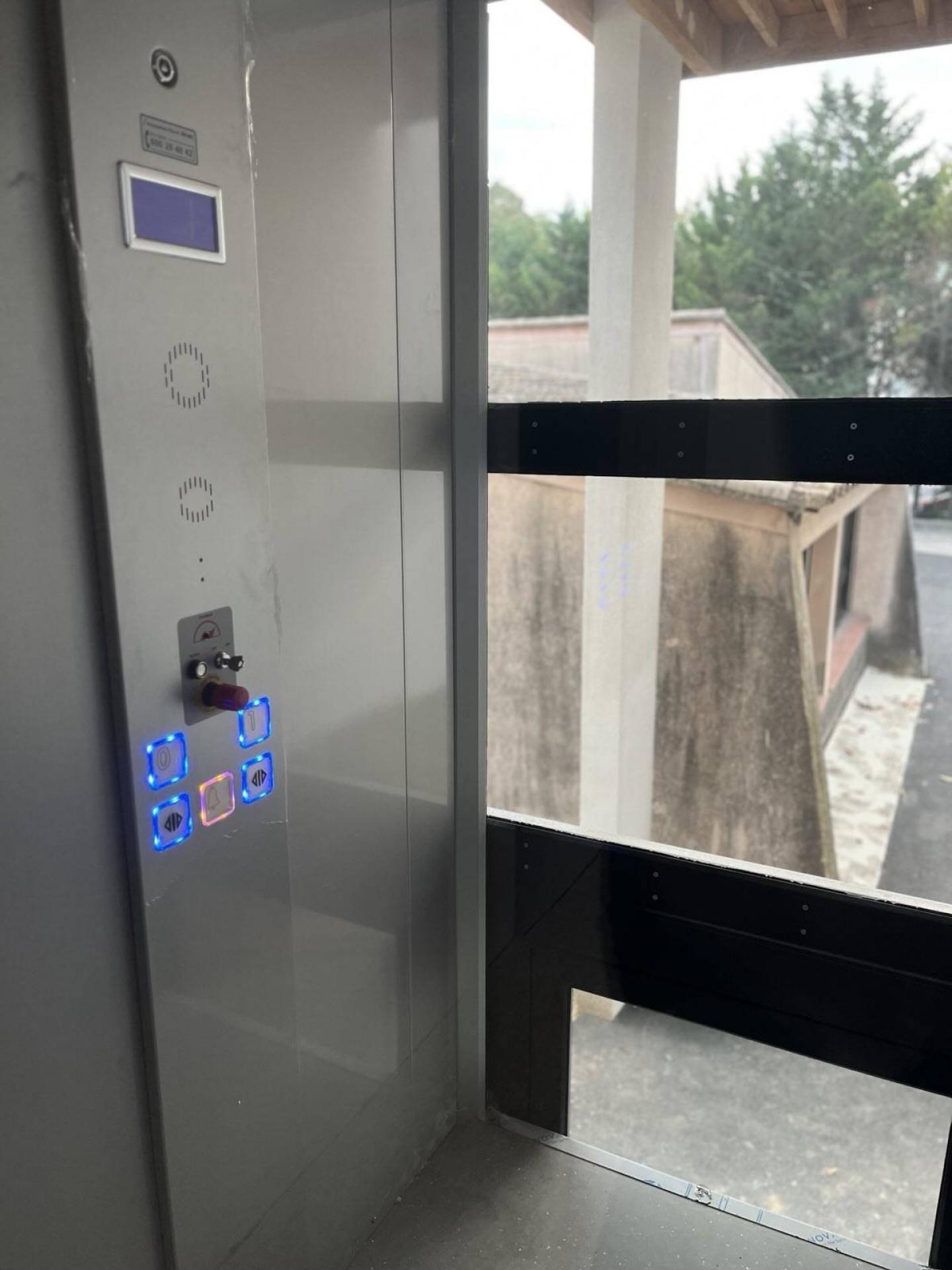Le pylône autoporteur vitré accueille une cabine aux parois simili inox, équipée de barrières infrarouge pour la sécurité. Les portes motorisées bénéficient d’un passage libre de plus de 830 mm, gong d’arrivée et afficheur d’étage en cabine et sur les paliers complètent la panoplie des aides apportées aux Personnes en Situation de Handicap pouvant emprunter cet élévateur vertical.