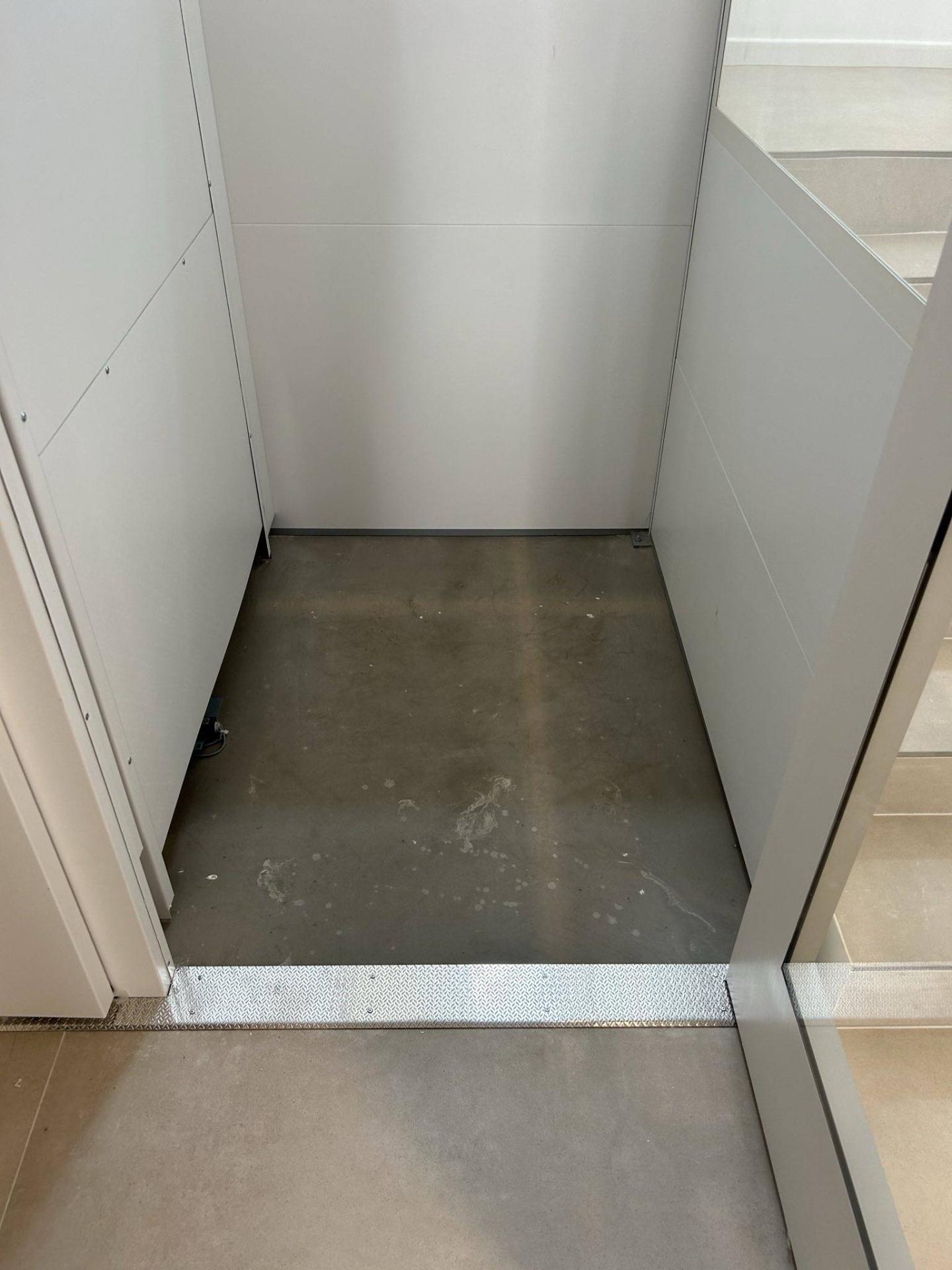 Le NAMILIFT PL 400 à vis sans fin présente de nombreux avantages tels que la possibilité de plateau intérieur sur mesure et un design qui s’adapte à son environnement. Dans notre cas, la partie de l’ascenseur contre l’escalier a été tôlée, par contre les parties visibles ont été vitrées ce qui donne un résultat du plus bel effet.
