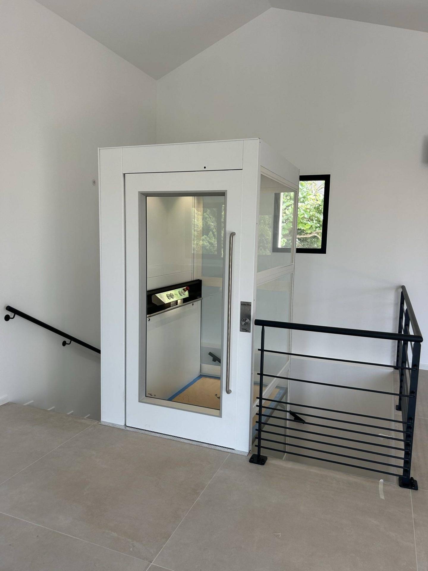 Le résultat final est à la hauteur des attentes du Client, d’autant que pour se fondre dans l’environnement un RAL spécial a été défini pour cet ascenseur de maison NAMILIFT PL 400 de couleur blanche.