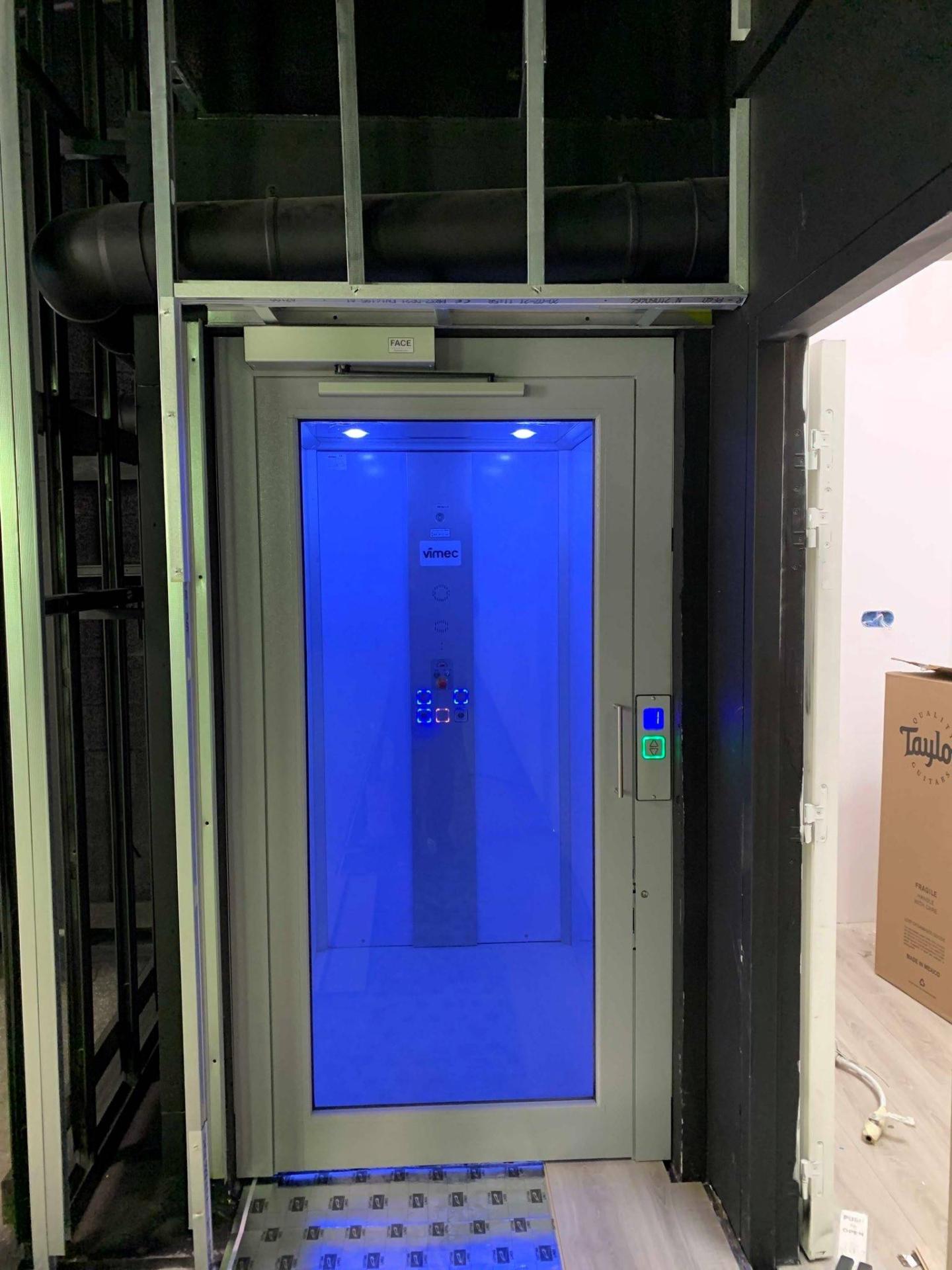 Cet ascenseur privatif de marque VIMEC répond à toutes les normes en vigueur en matière d'Etablissement Recevant du Public (ERP) notamment la norme EN 81-41. Il est installé en gaine maçonnée.