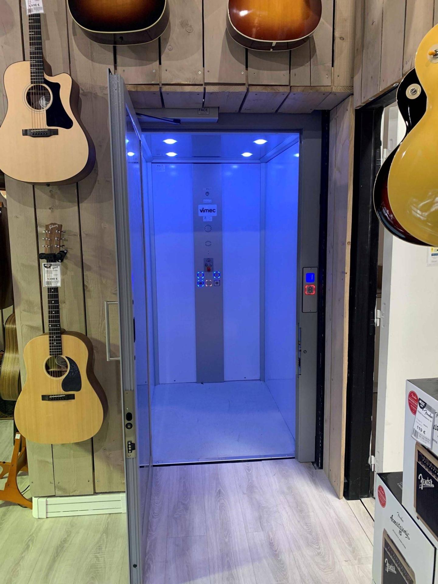 L'enjeu était de permettre à un professionnel possédant un magasin de faire bénéficier sa clientèle de l'accès à la mezzanine avec cet élévateur vertical à Marseille.