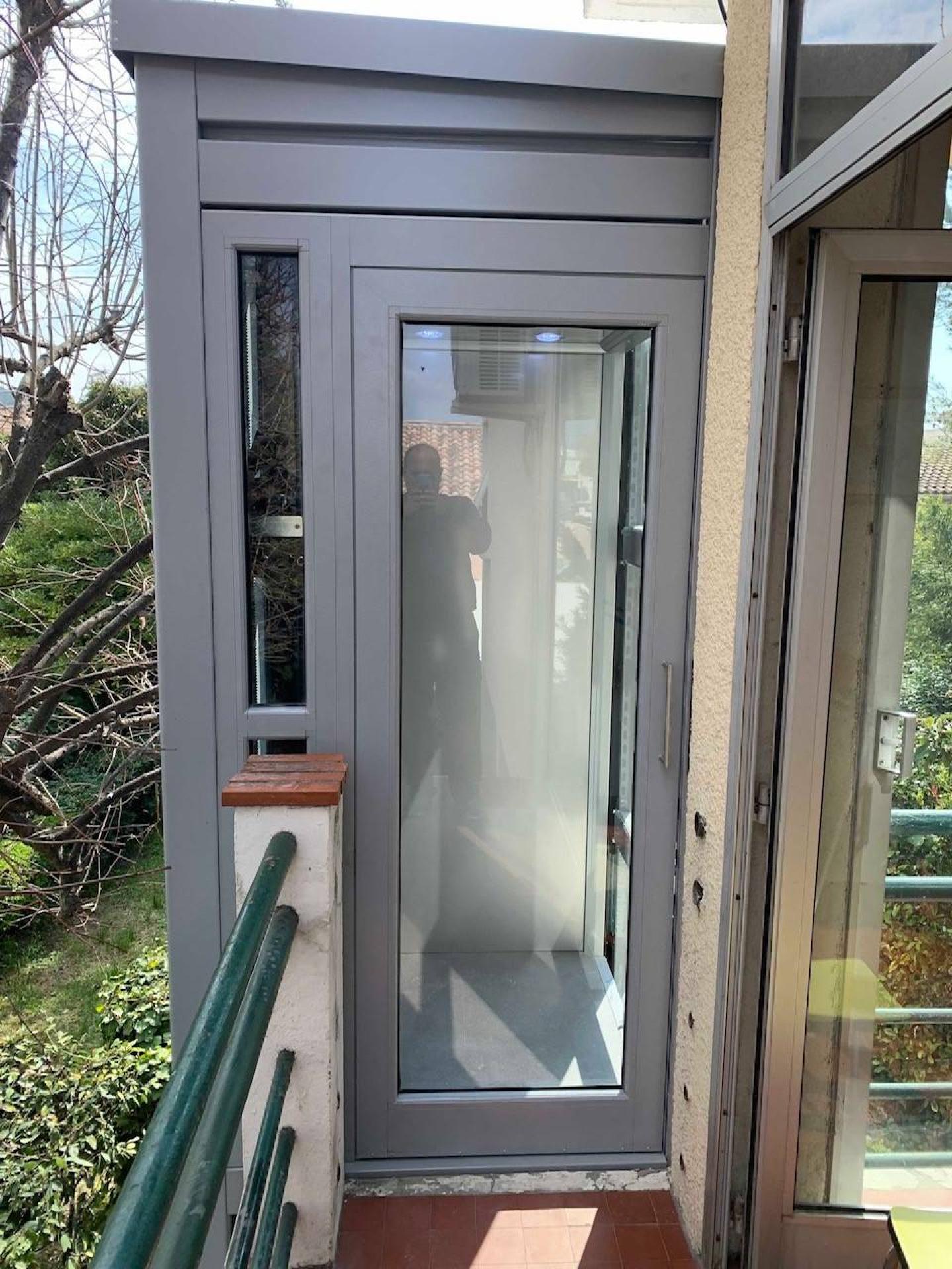 Nous avons installé un ascenseur privatif extérieur à Marignane, à proximité de Marseille et Aix-en-Provence, pour permettre à un monsieur âgé de rester vivre chez lui.