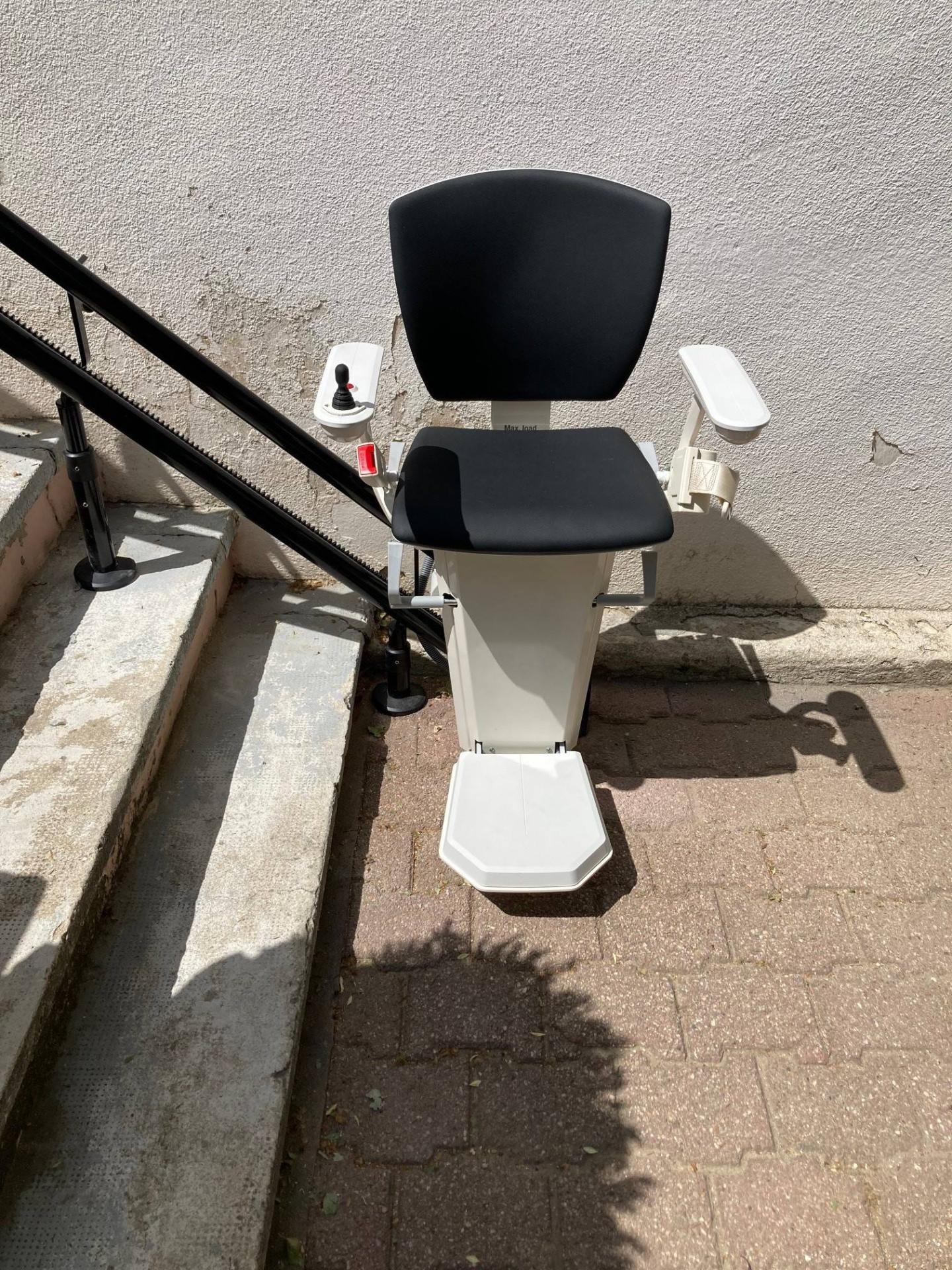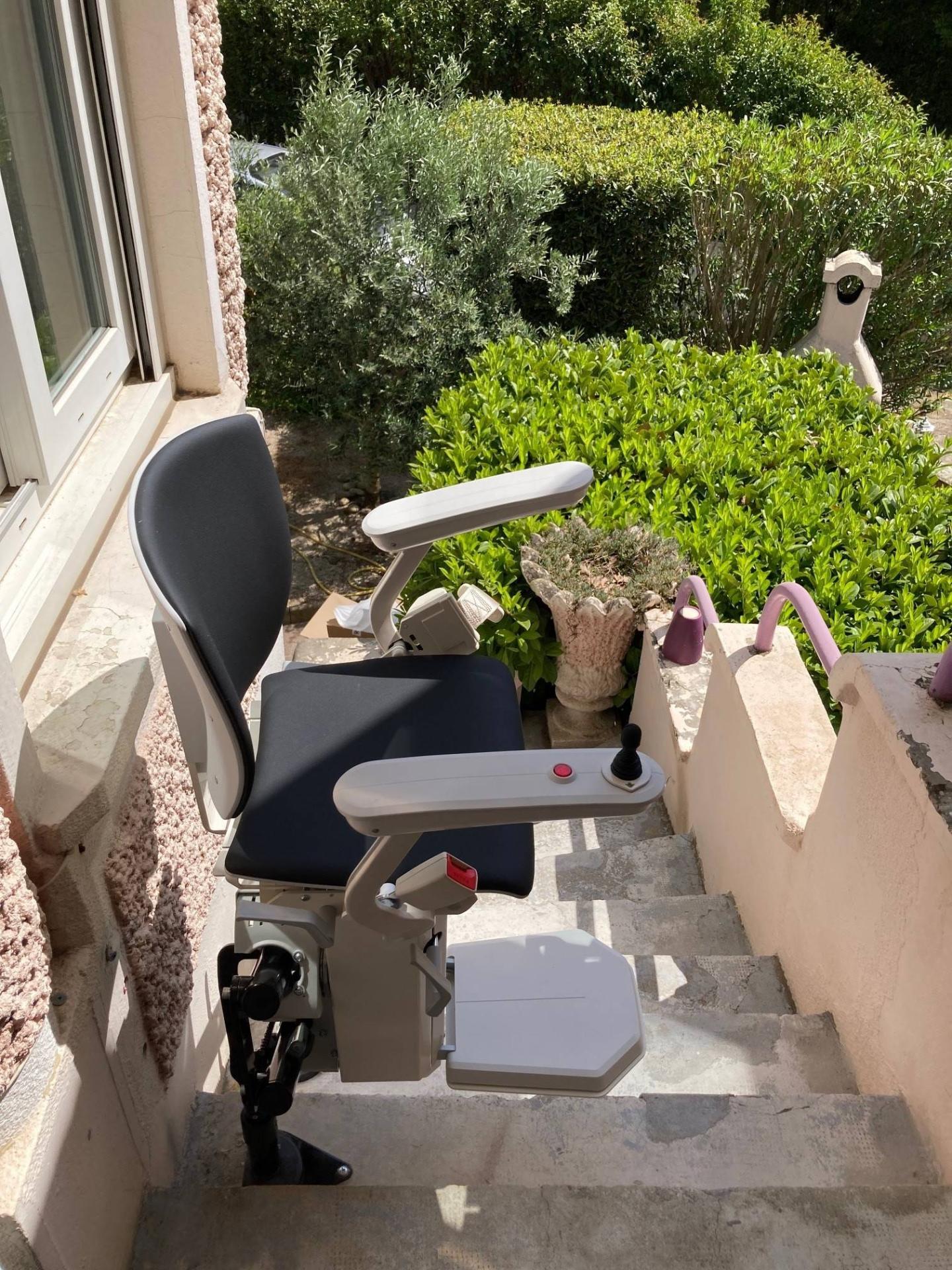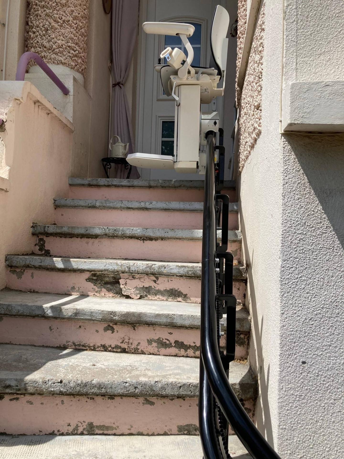 Installation d'un fauteuil monte-escalier extérieur sur escalier tournant à Orange près d'Avignon