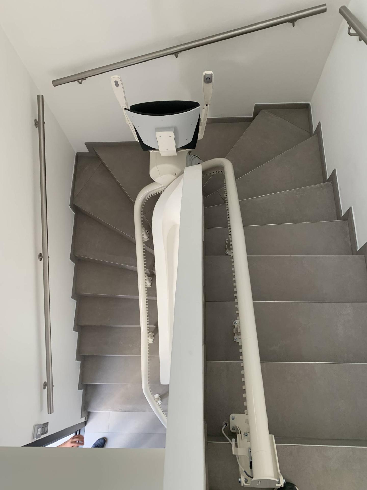 L'installation de ce fauteuil monte-escalier s'est déroulée sur la journée et a permis à tous de tester l'Otolift Modul'Air en fin de journée.