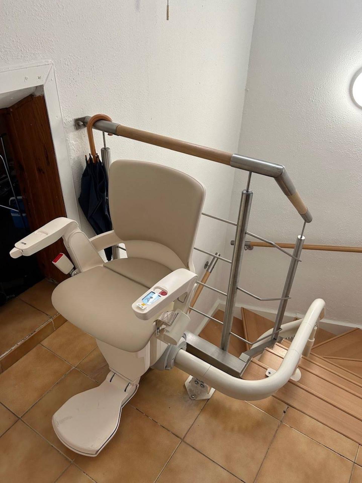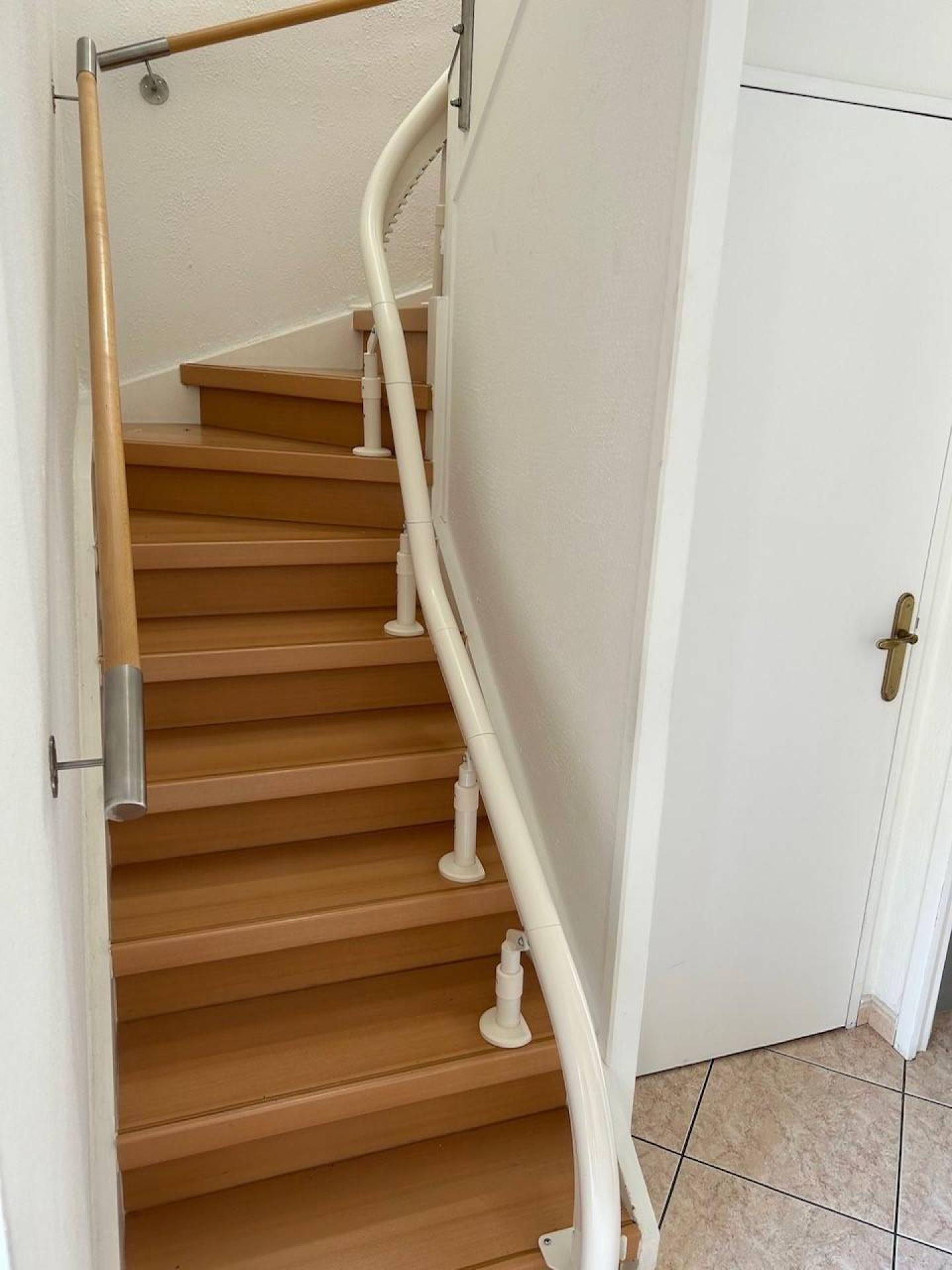 L'arrivée de ce fauteuil monte-escalier s'effectue via un parking à 90° ce qui a deux vertus :