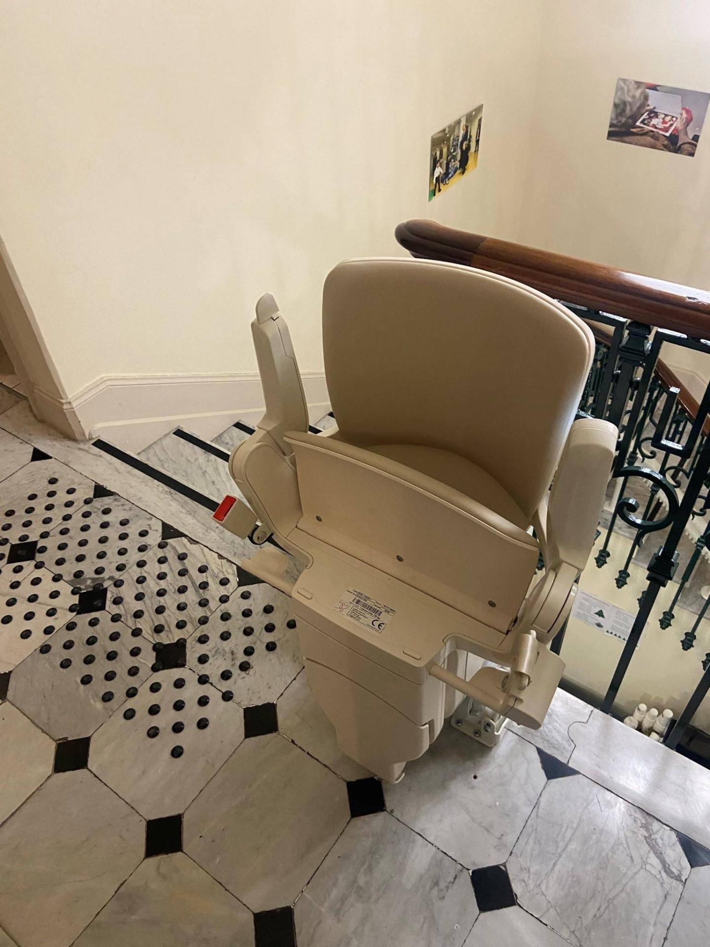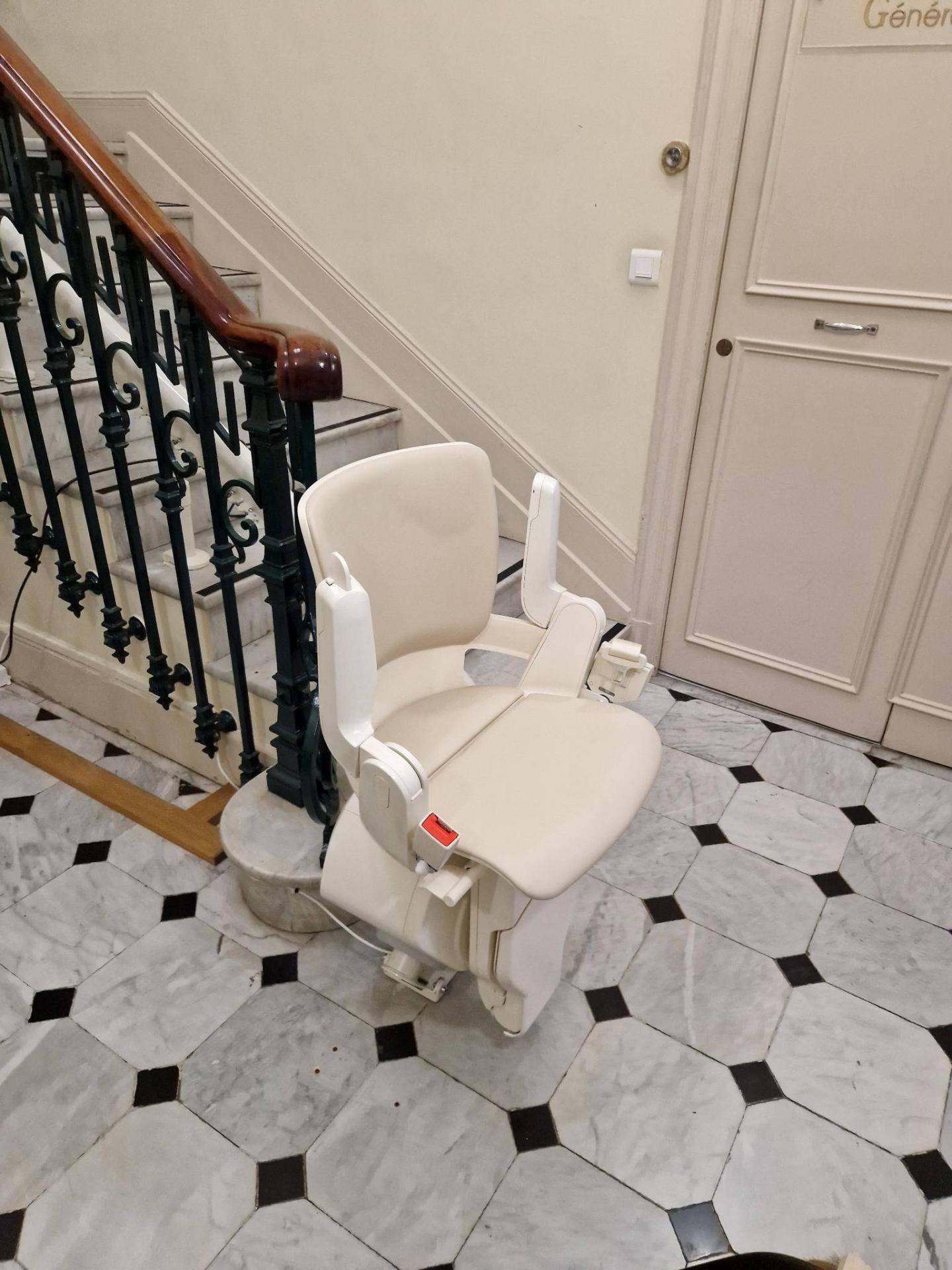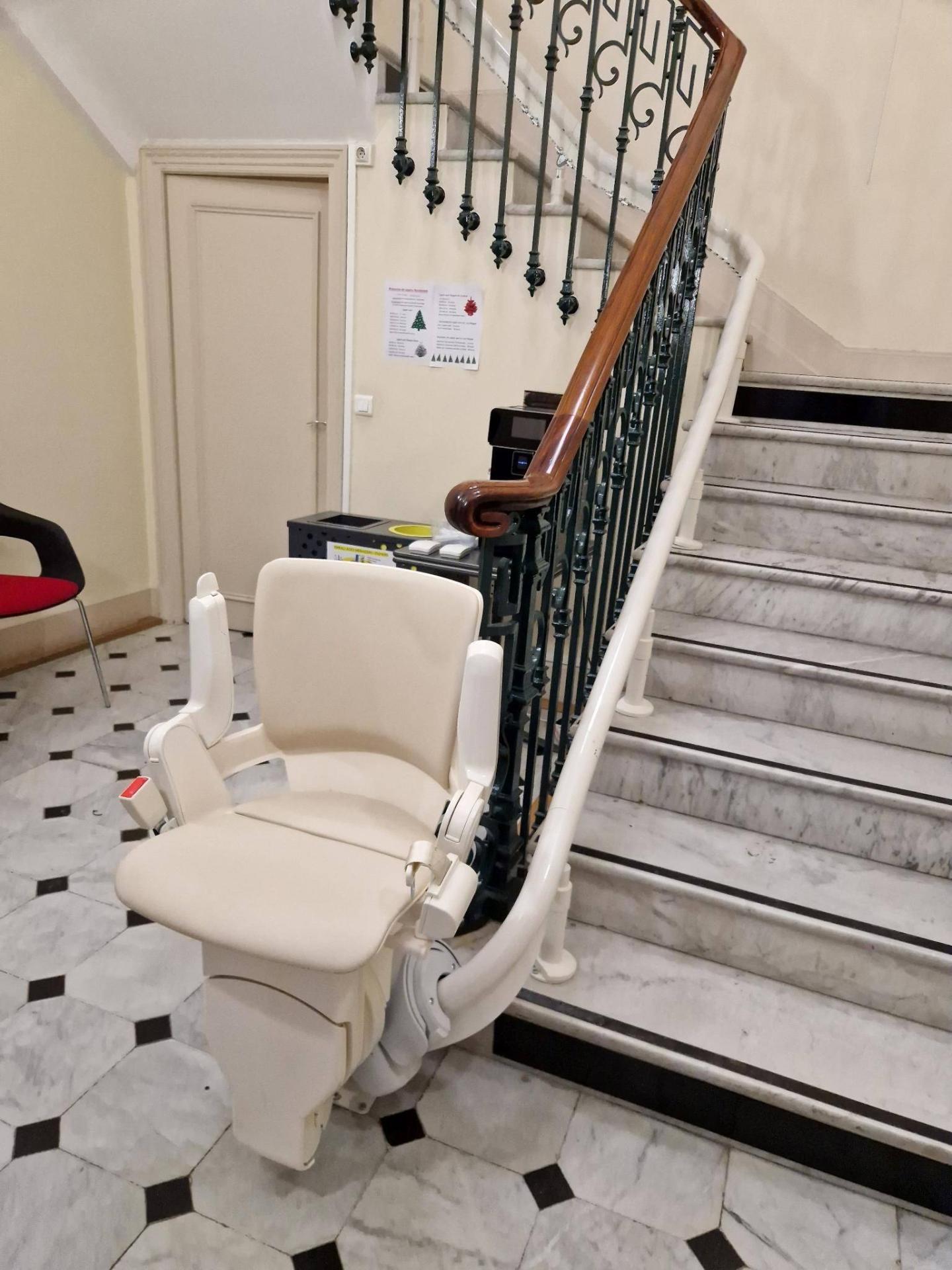 Pour cette installation, c’est un fauteuil monte-escalier OTOLIFT Modul'Air Smart, qui a été implanté dans le plus bel écrin qui soit, avec cet escalier en marbre.