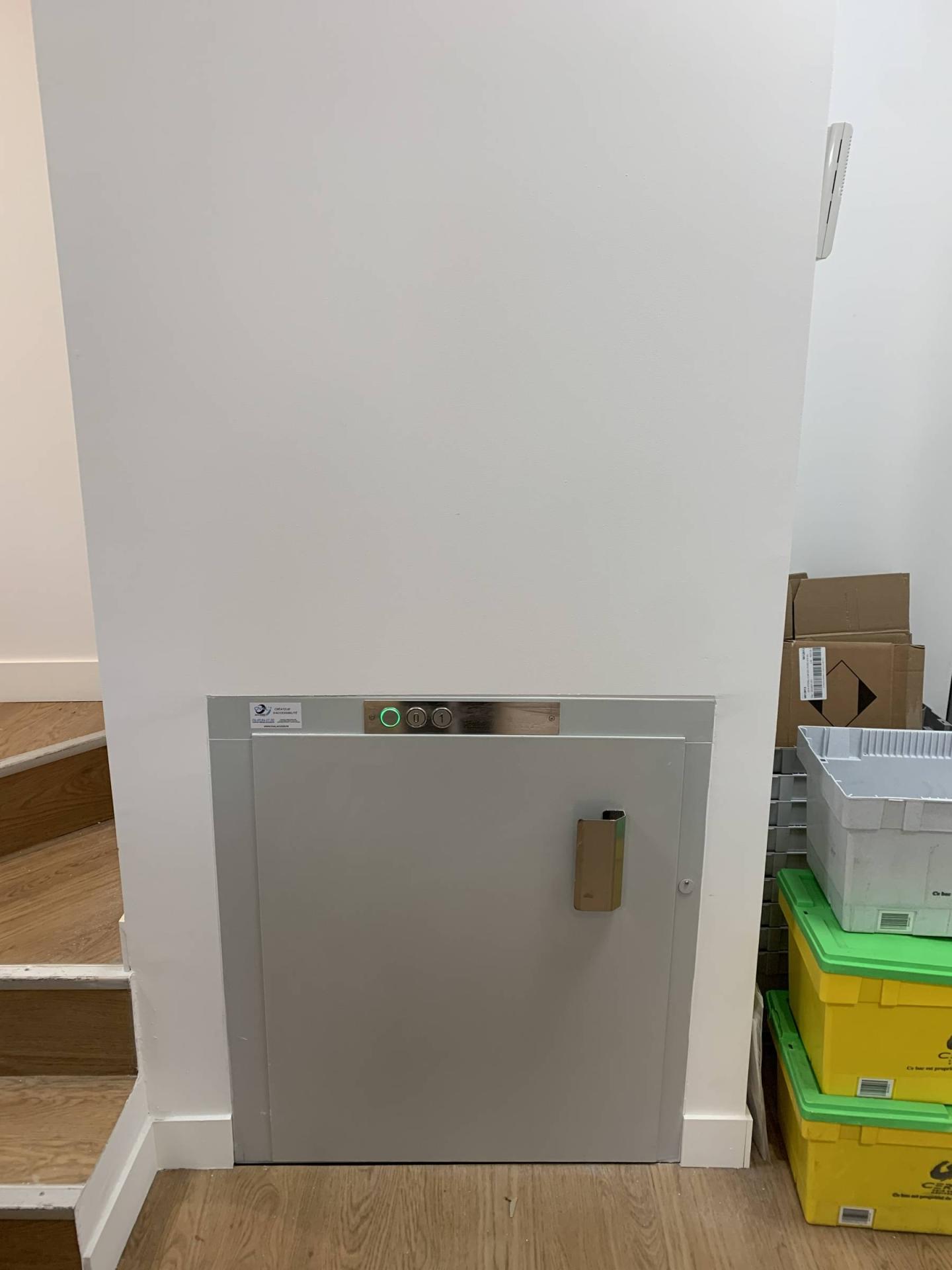 En lien avec le cabinet d'architecte marseillais SOY, appuyé par HIDRAL et ses monte-charges adaptés aux espaces contraints, Oval'Access a installé ce monte-charges hydraulique pouvant transporter 100 kgs maximum sur une course de 3500 mm.