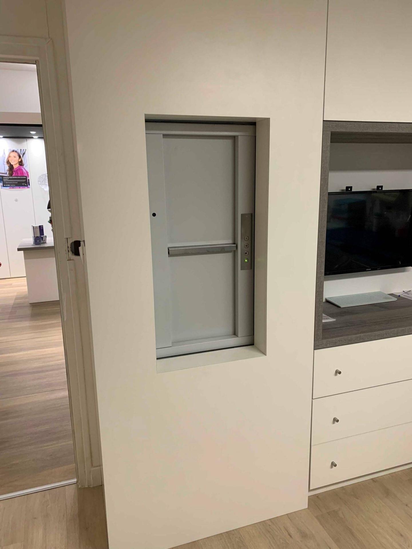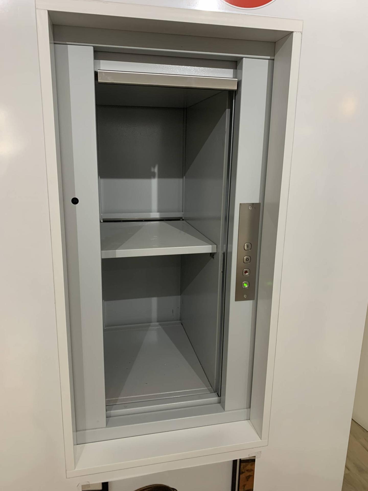 Hidral nous a fourni ce monte-plat hydraulique adapté aux charges de 50 kg maximum et à l'espace restreint disponible de 640x630 mm