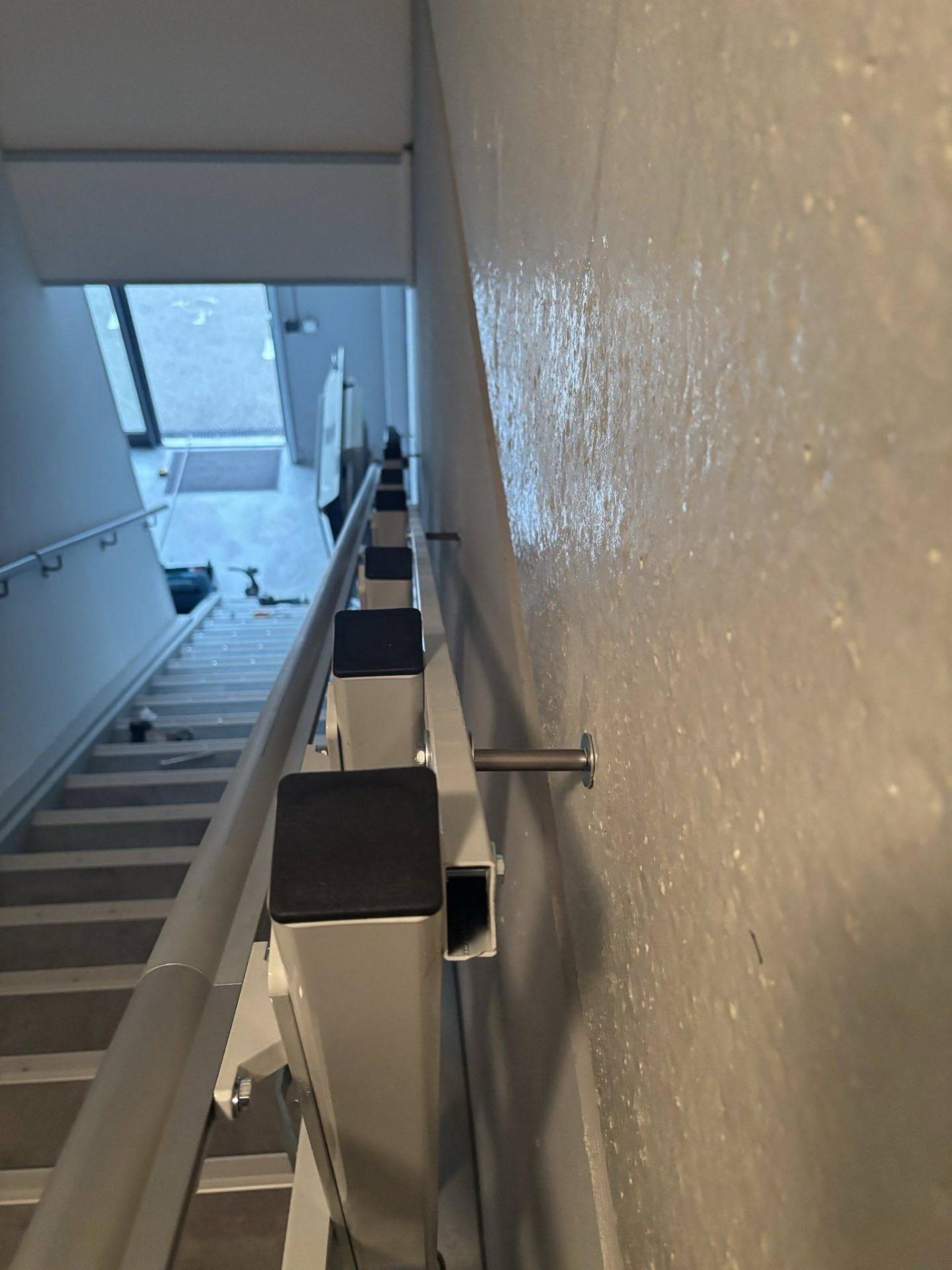 Pour répondre aux besoins de cet ERP, nous avons installé une plateforme monte-escalier oblique LEHNER DELTA, spécialement conçue pour s’intégrer dans les escaliers exigus et répondre aux normes strictes d’accessibilité.