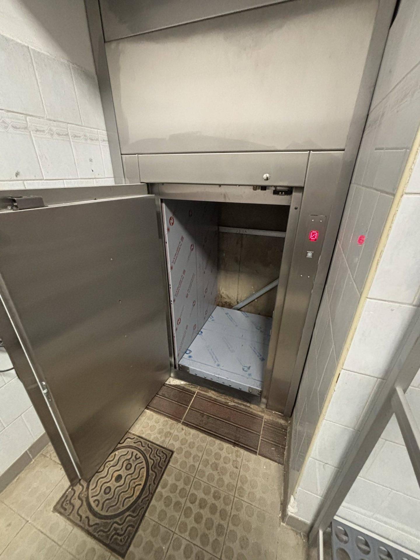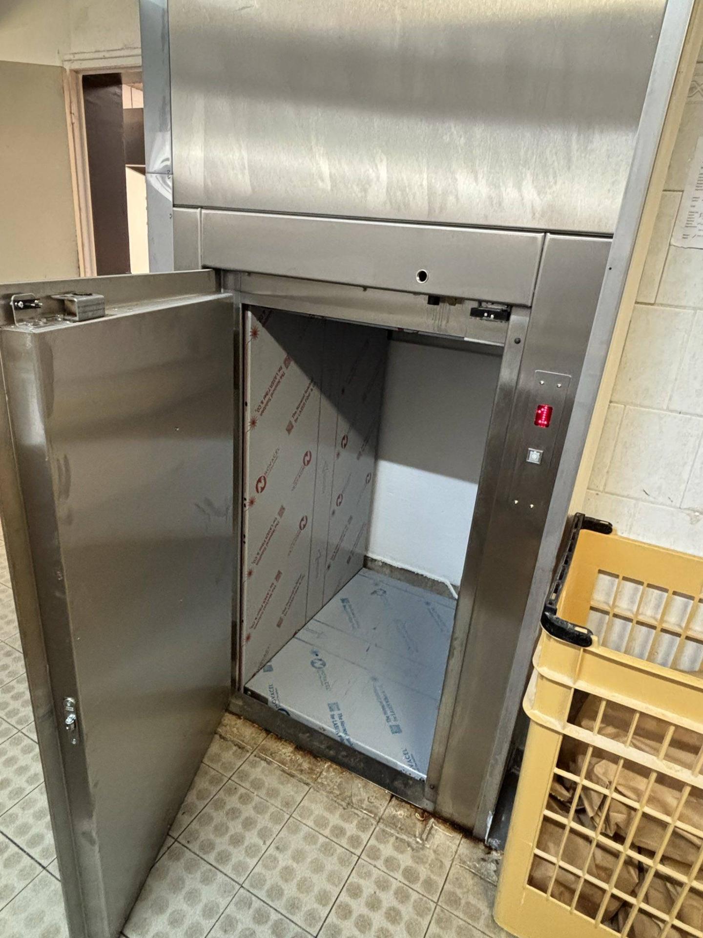 C’est donc avec enthousiasme (et un brin d’huile de coude) que notre équipe Oval’Access est intervenue pour retirer cette relique préhistorique du transport vertical. Après tout, il fallait faire de la place pour la star du jour : un tout nouveau monte-charge SKG, clinquant, inoxydable et conçu sur-mesure pour répondre aux besoins du centre de loisirs, en constante évolution depuis quatre décennies.