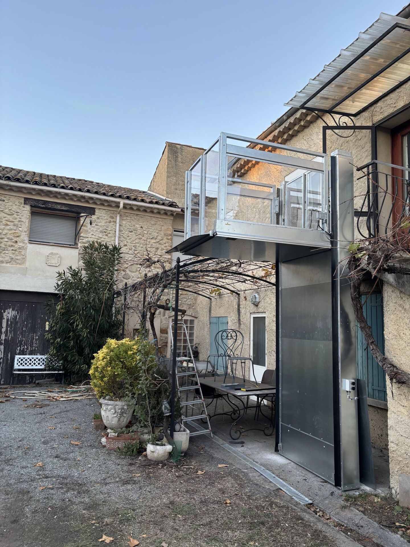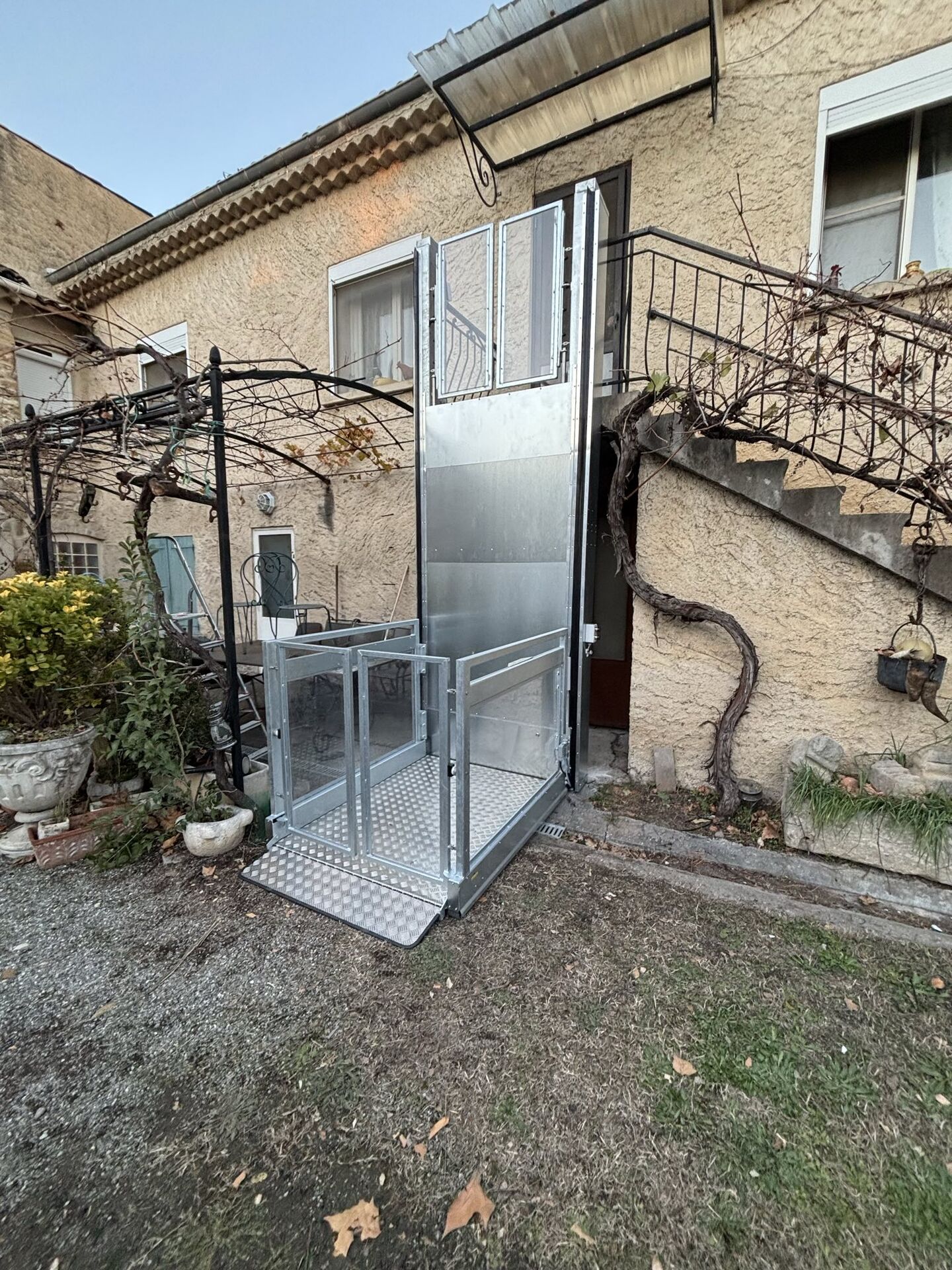 L’escalier extérieur était devenu un véritable obstacle : difficile de remonter les courses, compliqué de se rendre au jardin, presque impossible d’accueillir les proches arrivant avec une poussette. Avec la plateforme verticale STRATEGOS, tout change :